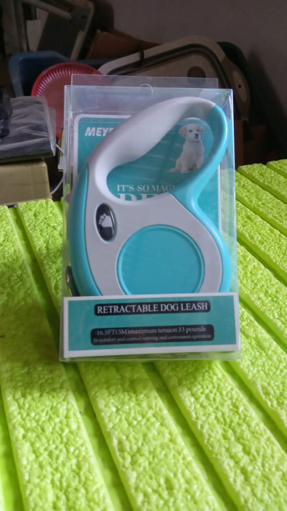 • Retractable dog leash extends up to 16.5 feet. Single lock / release button allows instant retraction and extension.
