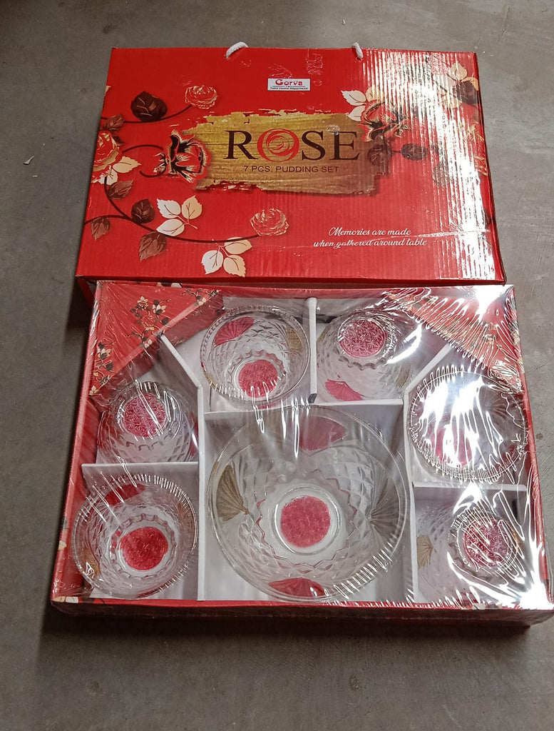 8234 Rose glass Multipurpose Pudding / Dessert / Ice Cream Bowl Set for Home use, Home & Kitchen Serving Bowl for Sundae, Sweets, Snacks, Fruit, Pudding, Nuts or Dip, Serving Bowls 6 Medium & 1 Big Bowl (Set of 7 pc)