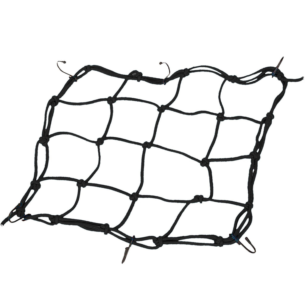 • Essential for storing spare helmets and jackets or equipment and luggage while you're on the road, the net is made from bungee cord, has 4 hooks to hold down luggage and other things.